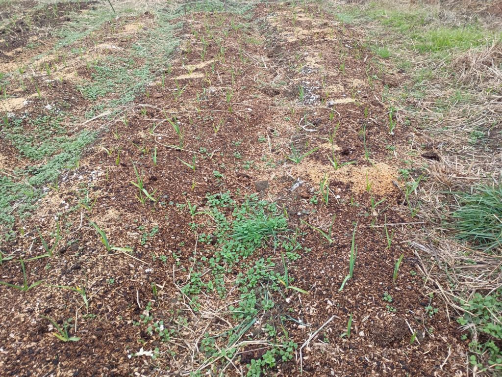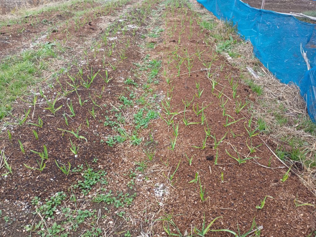 暖冬のおかげで遅くに植えたニンニクも少しづつ育ってきてます