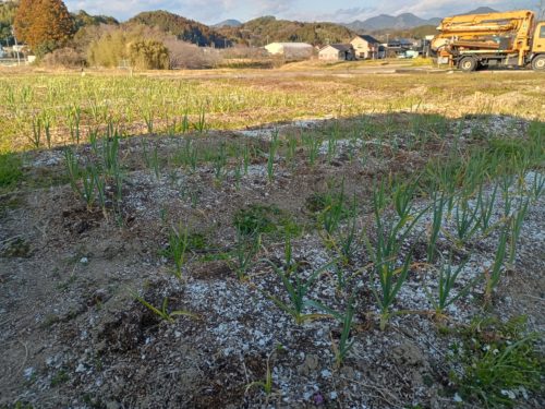 6aくらいの畑の規模で、鶏糞を15kg×4袋いかないくらいを撒いてました