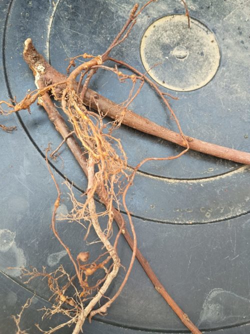 引き上げてみると、ネコブセンチュウによる瘤のようです。