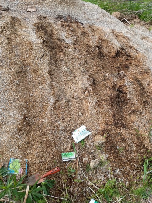 どの高さが育ちやすいとかもあるかなと思い、一直線で種を撒いていきます。