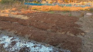 11/26 にんにくの畑に引き続きマルチ+肥料やりをしていました